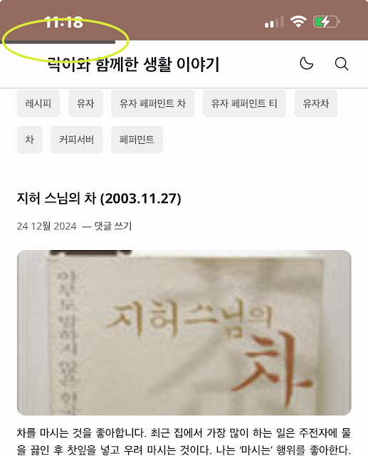 이때 상단에 얇은 막대가 보입니다. 스크롤을 내릴수록 오른쪽으로 채워집니다. 글의 끝에 도달하면 100%가 됩니다.